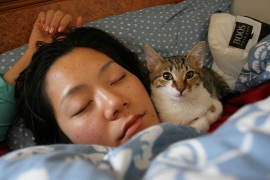 圖示:越來越肥的Bonbon:黑黑!跟媽咪一起睡,很溫暖ㄛ!